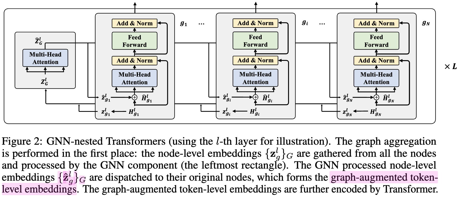 여러개의 GNN-nested Transformers multiple layers로 구성