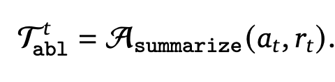 $T_{abl}$: 이전 step들에서 수행했던 ablation studies의 요약된 context. Summary Agent가 생성함