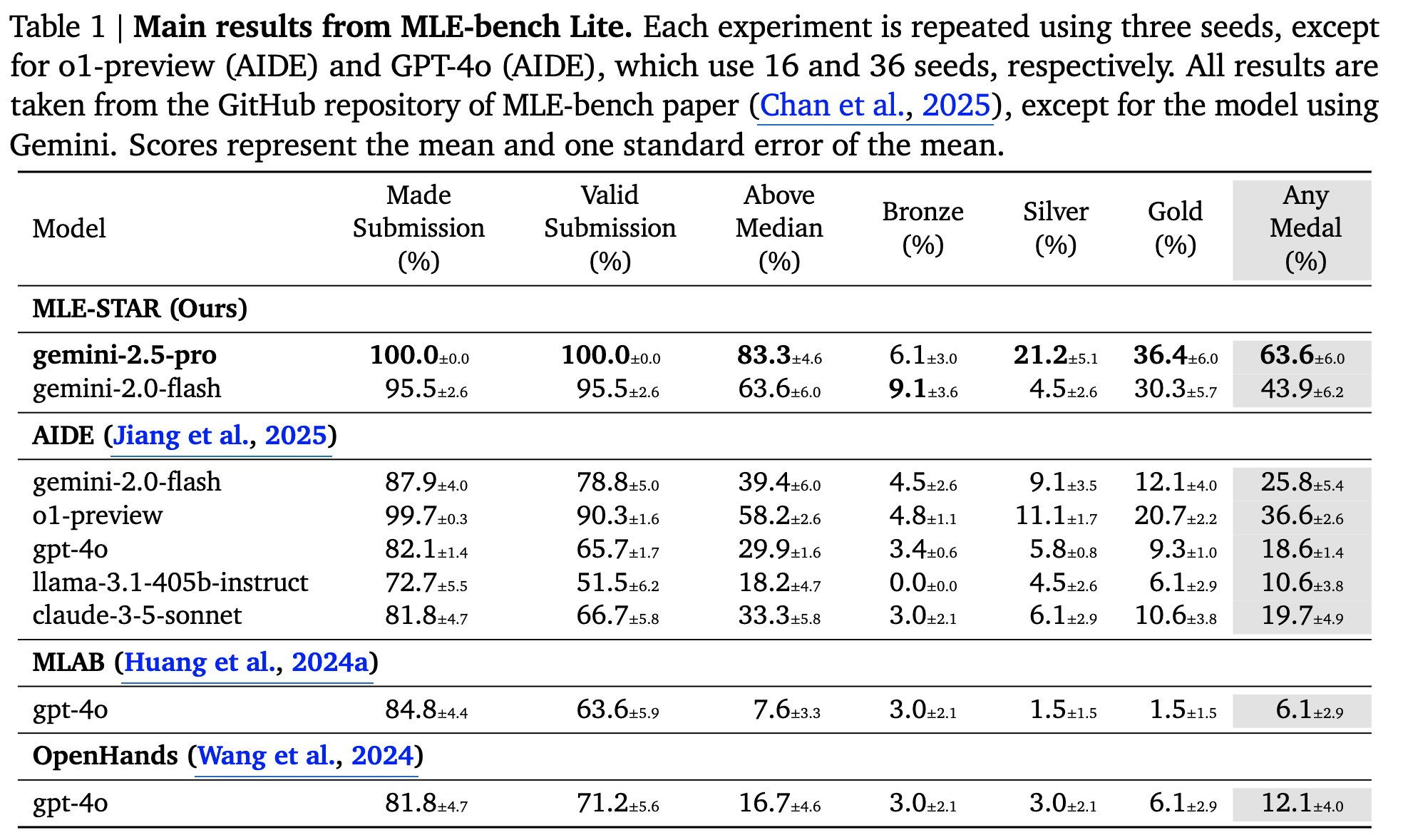 MLE-bench Kaggle 대회에서 SOTA를 찍음 (25.8% $\to$ 63.6%)