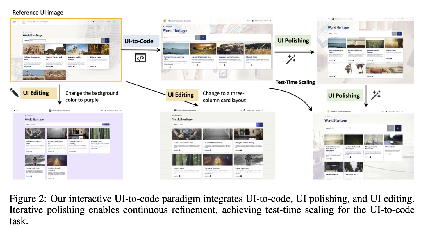 $\to$ Multi-turn의 Interactive UI-to-code 패러다임을 제안해보자! (+Test-time scaling)